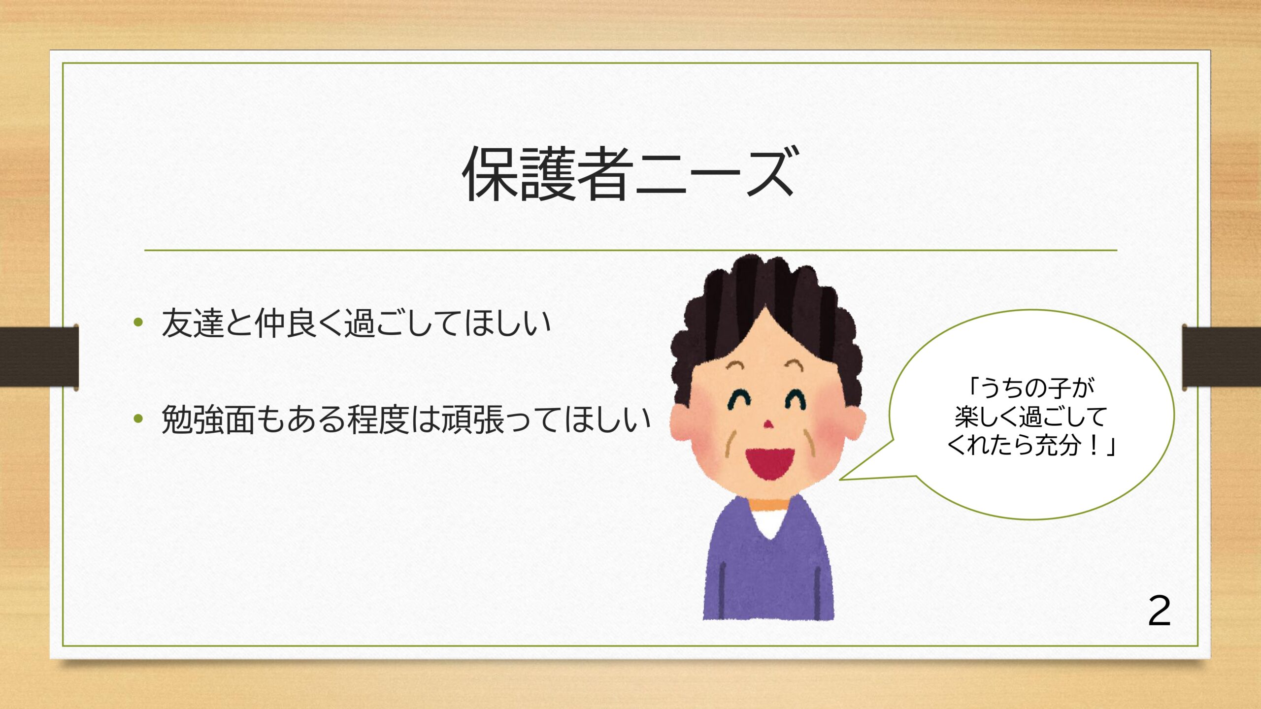 今回の保護者ニーズは、友達づきあいとの関わりや学習に関してになっています