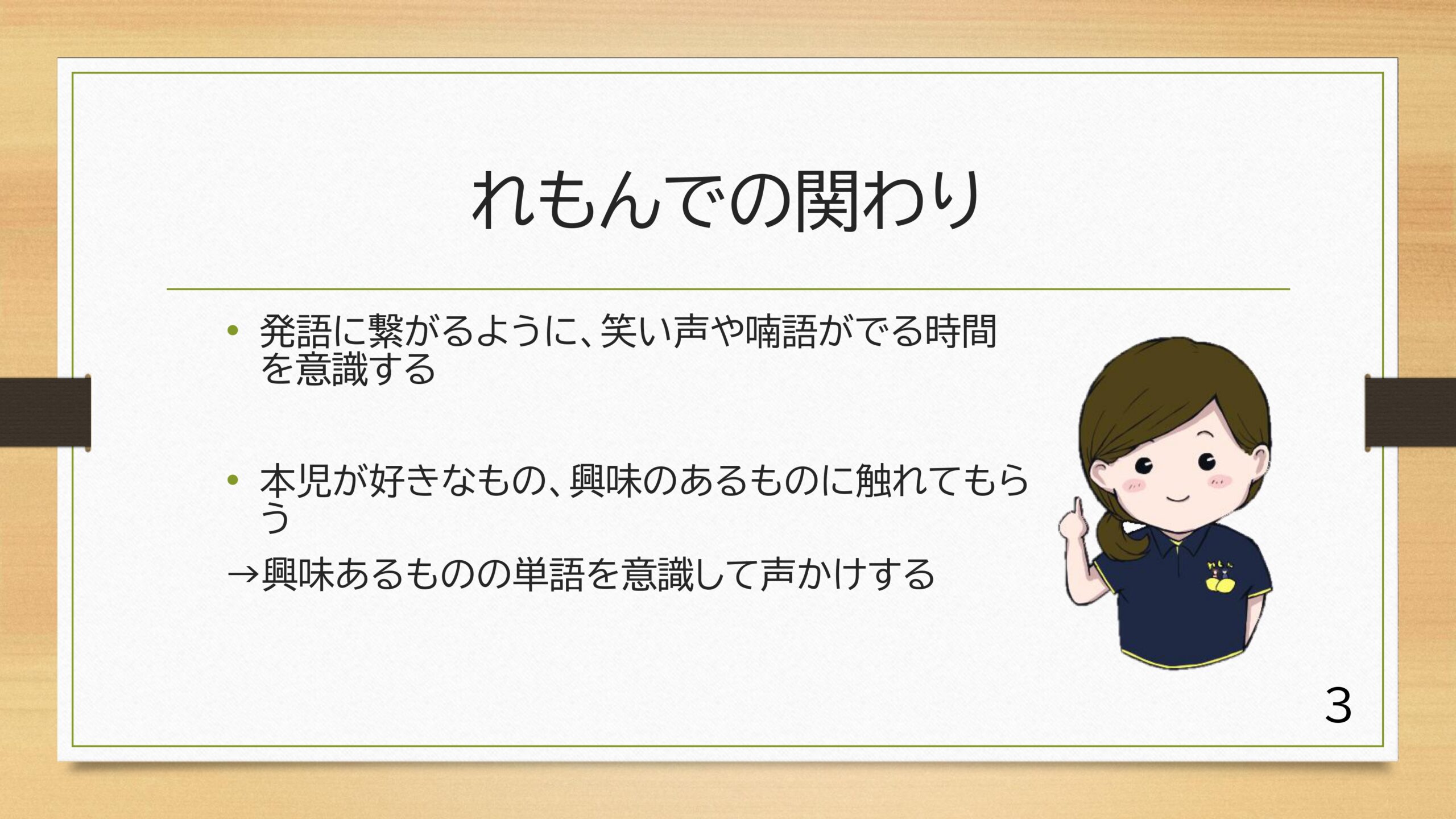 その子が好きなものや、見たことがあるものにたくさん触れてもらいながら、単語を意識して声掛けしています!