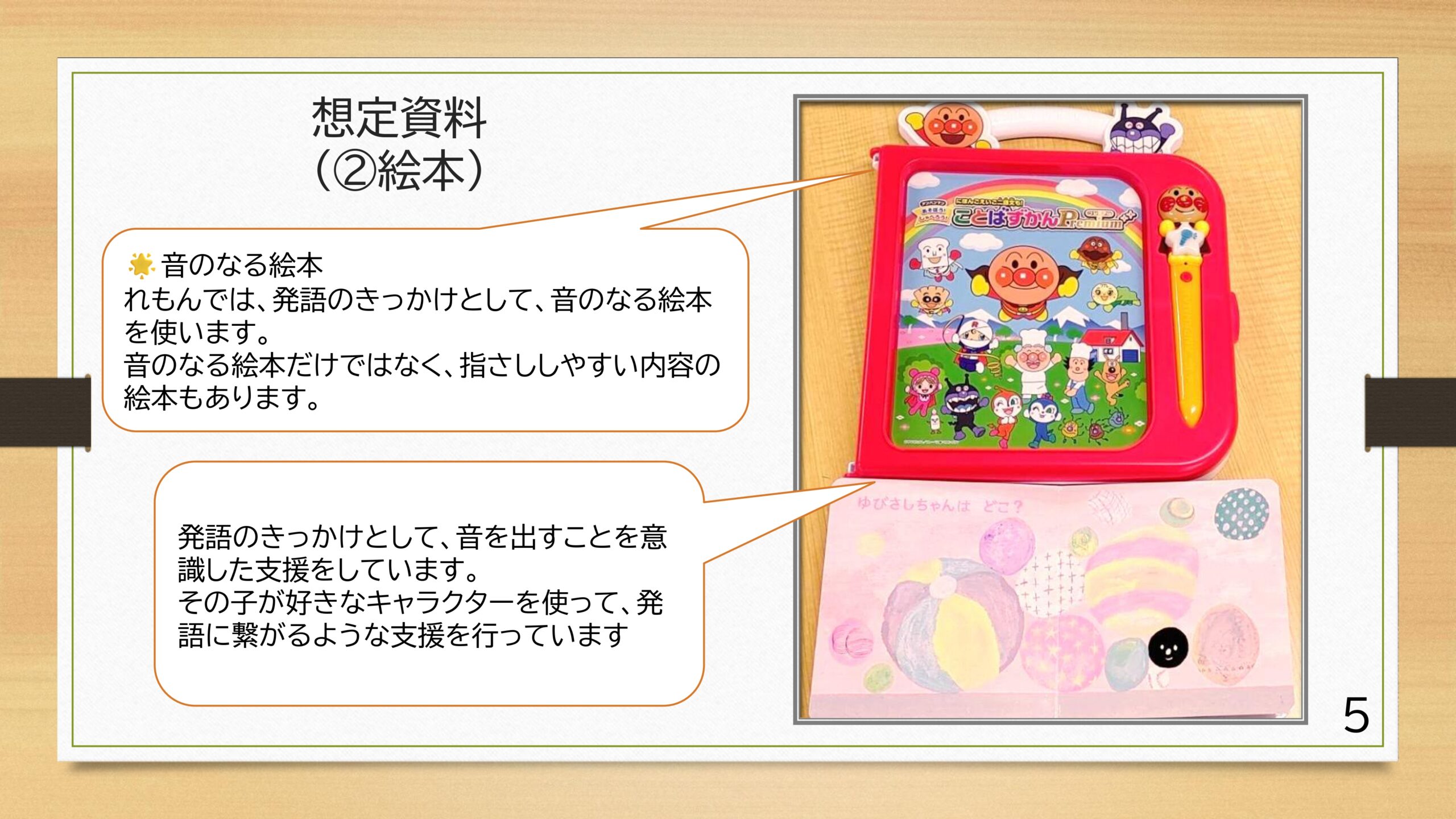 れもんには、発語が少ない子に向けて音のなるキャラクターものの絵本があります。